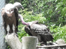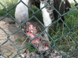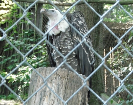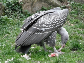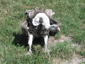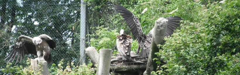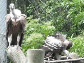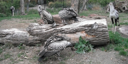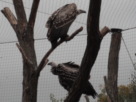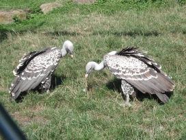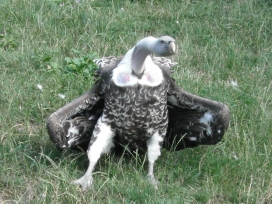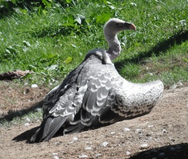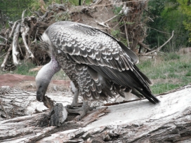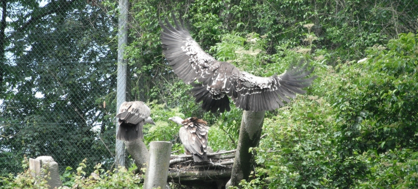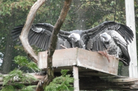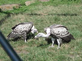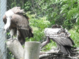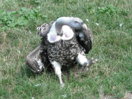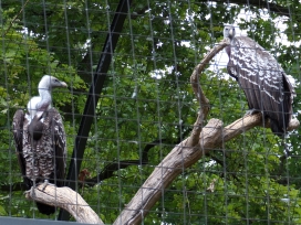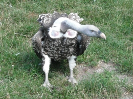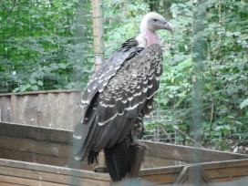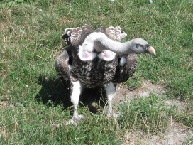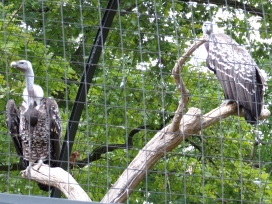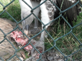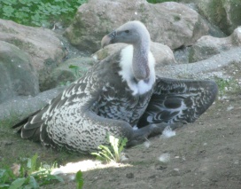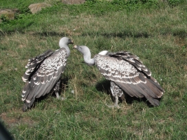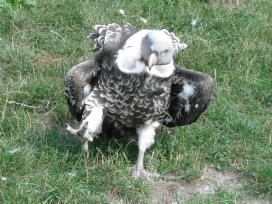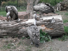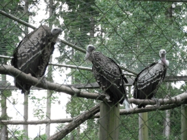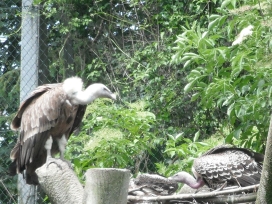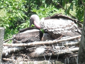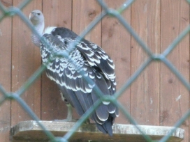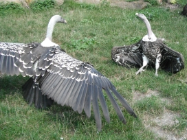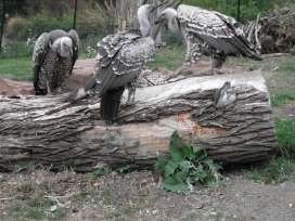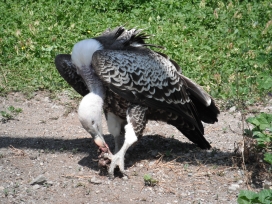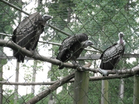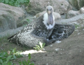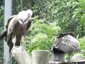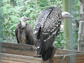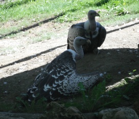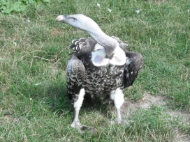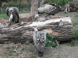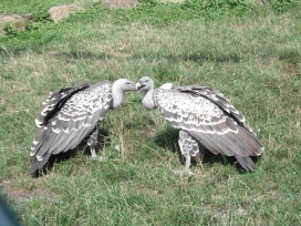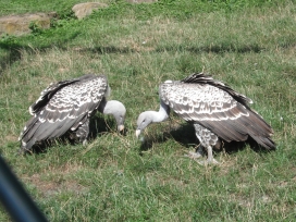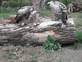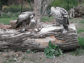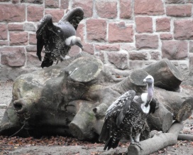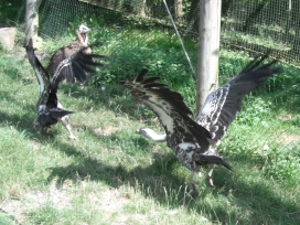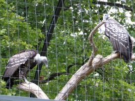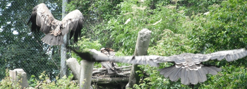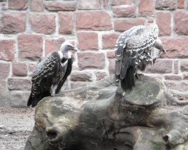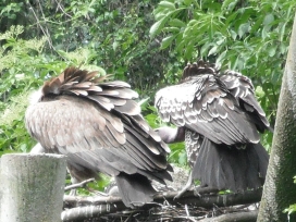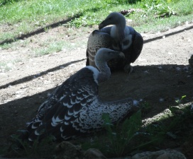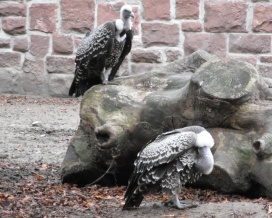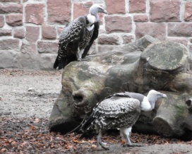 Sperbergeier leben paarweise oder in Gruppen (Greifvogelstation Hellenthal: Zooschilder).