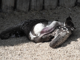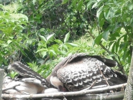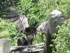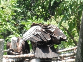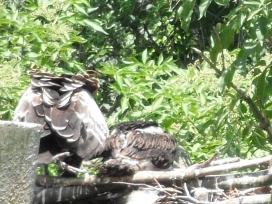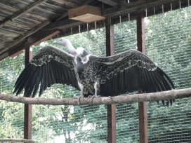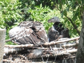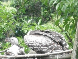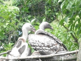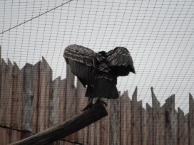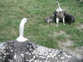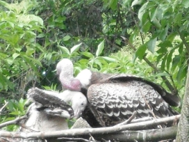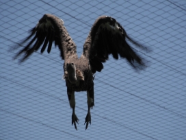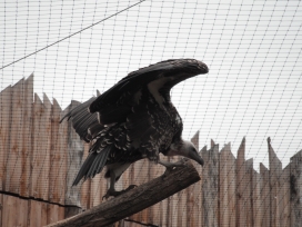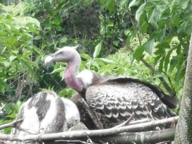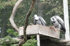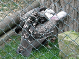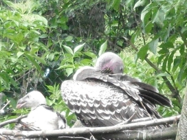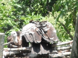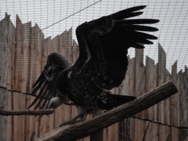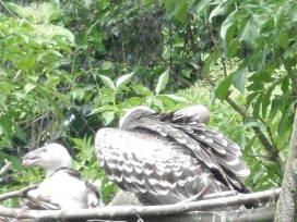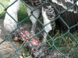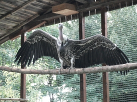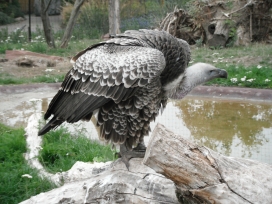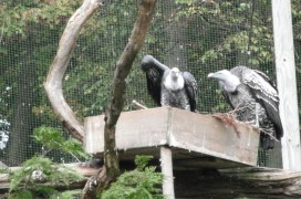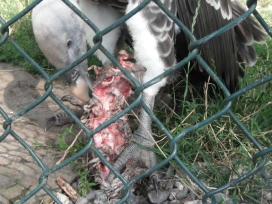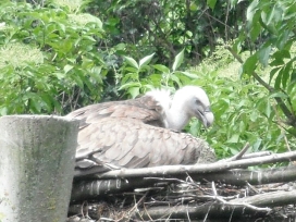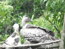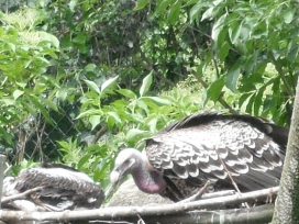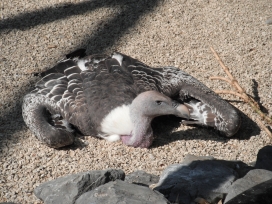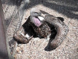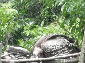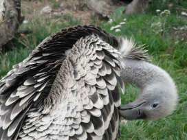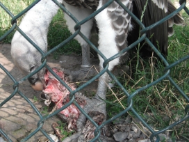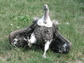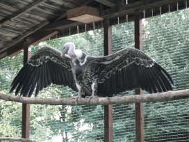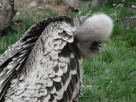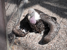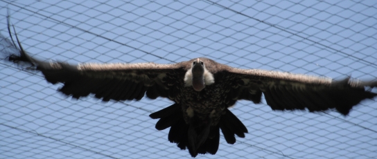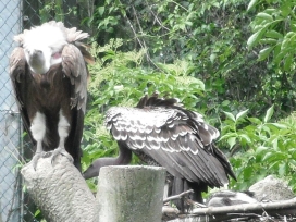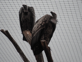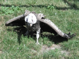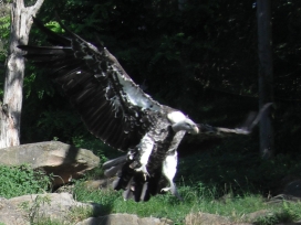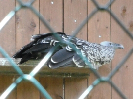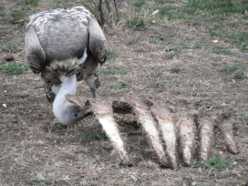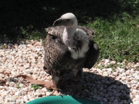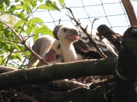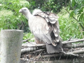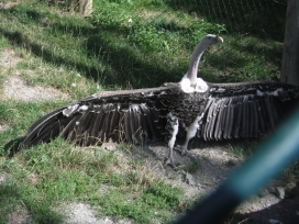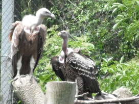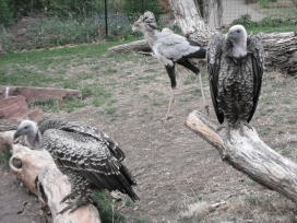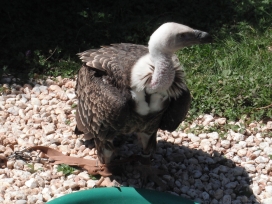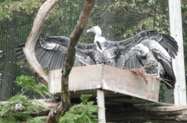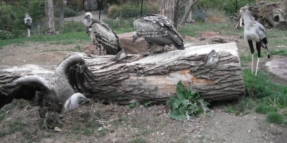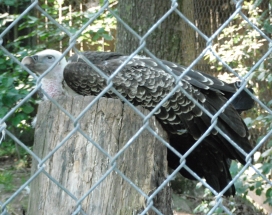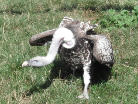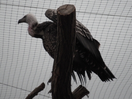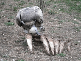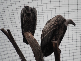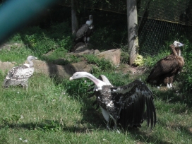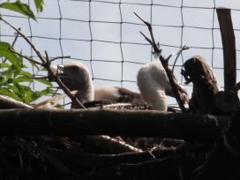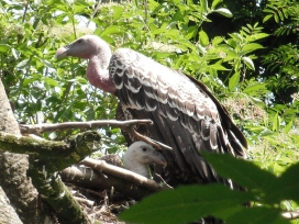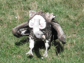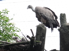 Sperbergeier leben paarweise oder in Gruppen (Greifvogelstation Hellenthal: Zooschilder).