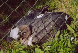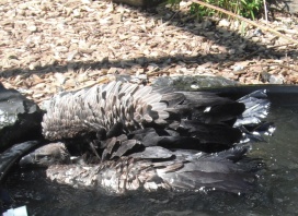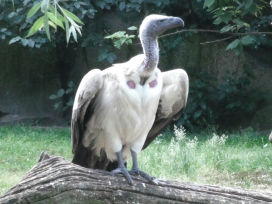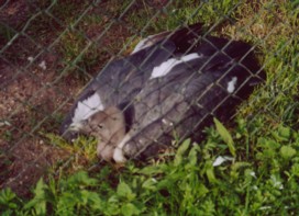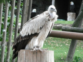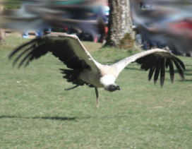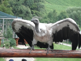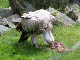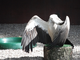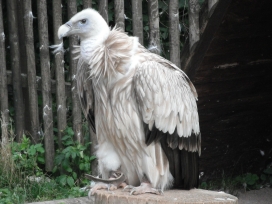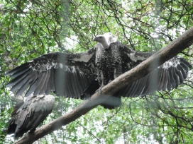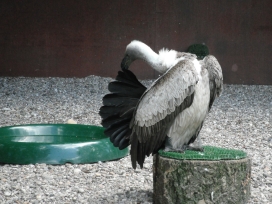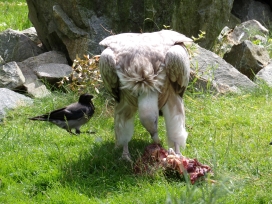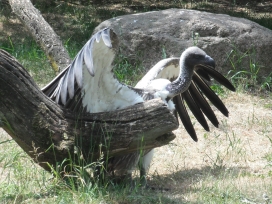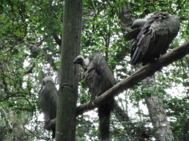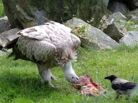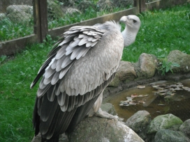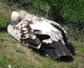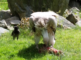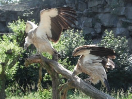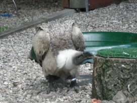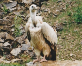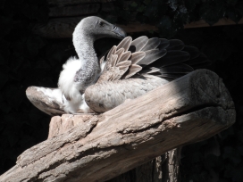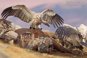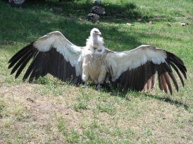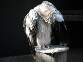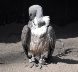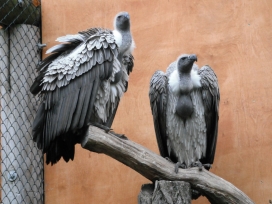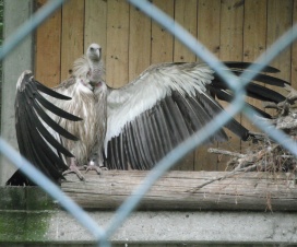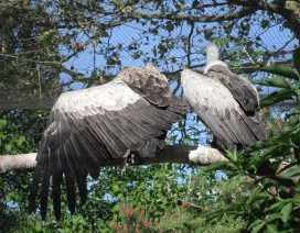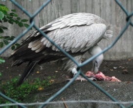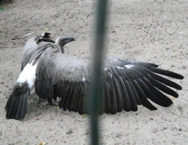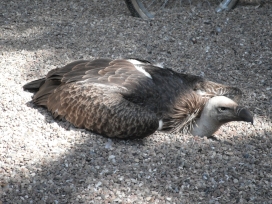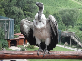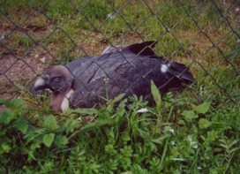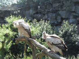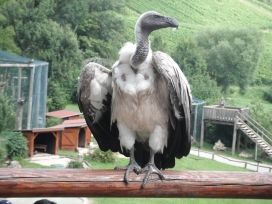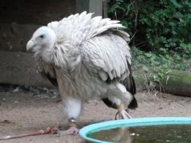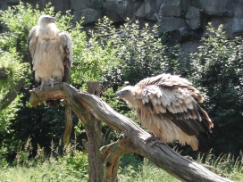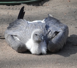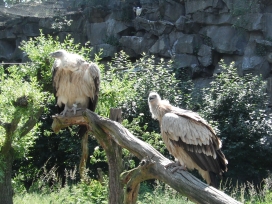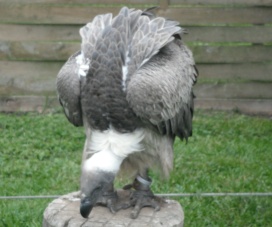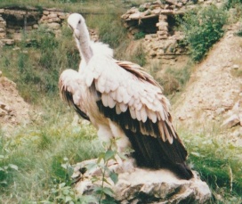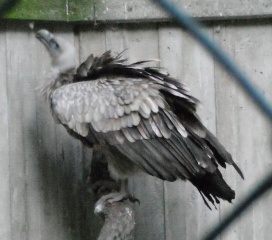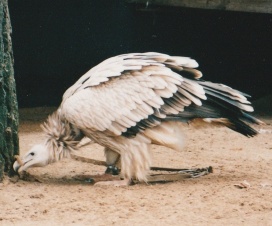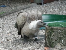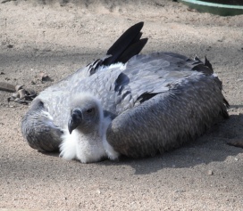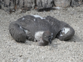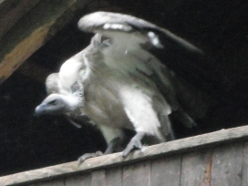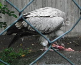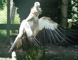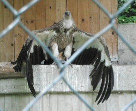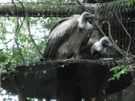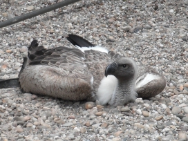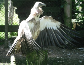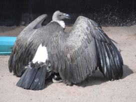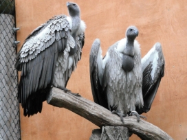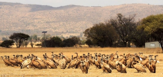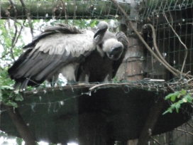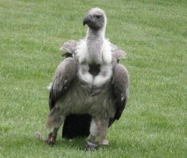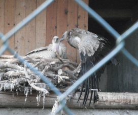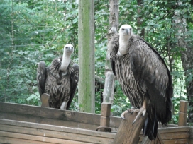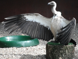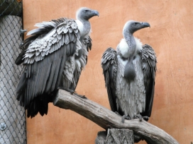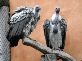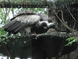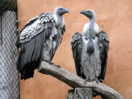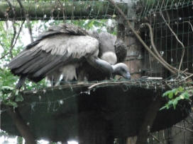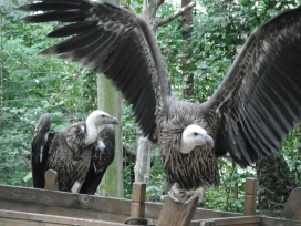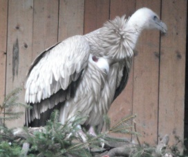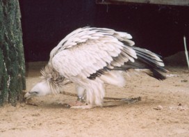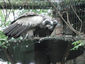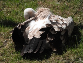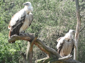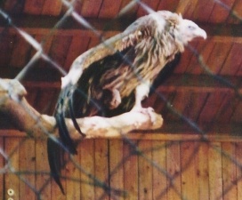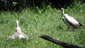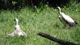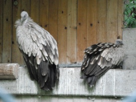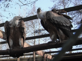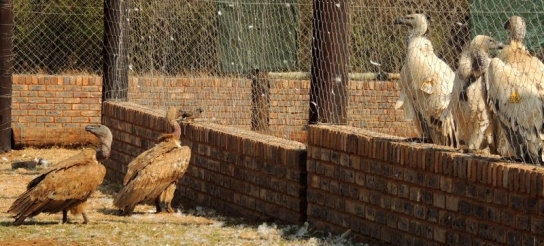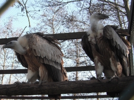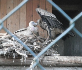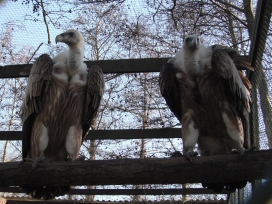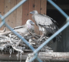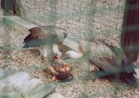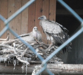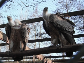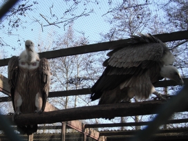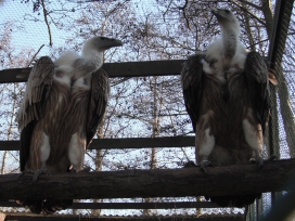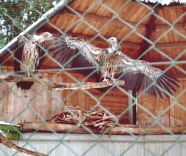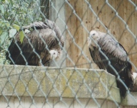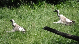 Mit freundlicher Genehmigung von Bettina Boemans, www.geierwelt.blogspot.de, wurde das obere Foto einer Ansammlung von Kapgeiern und das untere Foto (links: wilde Kapgeier und rechts: nicht-auswilderungsfähiger Kapgeier in der Brutvoliere bei "VulPro" (Vulture Conservation Programme (Südafrika)), www.vulpro.com) verwendet. |