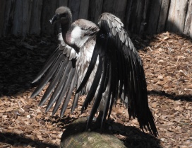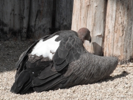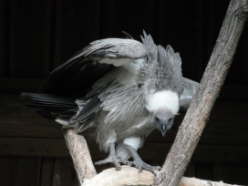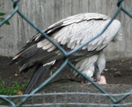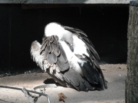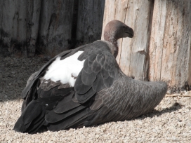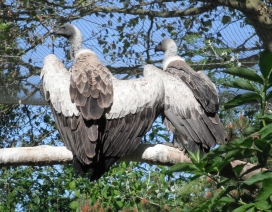08. Weissrückengeier (oder Zwerggänsegeier) Die Weissrückengeier leben an den flussnahen Bäumen, in den Savannen, in bis 4.000m Höhe. Als Verbreitungsgebiet wird Afrika (Blaszkiewitz: „Tierpark Berlin; Wegweiser durch den Tierpark“, (2012 (48. Aufl.); 2013 (49.Aufl.)) oder Afrika, „südlich der Sahara“ („Das moderne Tierlexikon (in zwölf Bänden)“ Band 4 (Geb-Heri); „Die Natur: Visuelle Enzyklopädie …..“, 2010; Wildparadies Tripsdrill: Zooschild (Wildparadies-Schild: Weissrückengeier); Tierpark Berlin Friedrichsfelde: Zooschild (Tierpark-Zooschild: Zwerggänsegeier); Tierpark Berlin 2024: Tierparkschild: „Weissrückengeier“) oder weite Teile „Afrikas südlich der Sahara“ („Lebendige Wildnis, Tiere der Baumsavanne“ (1995)) oder „Zentral- bis Südafrika“ (Adlerwarte Berlebeck: Zooschild) oder Senegal bis Südangola und Äthiopien bis Nordnatal (Robiller: „Lexikon der Vogelhaltung“ (1986)) oder Namibia, Botswana, Simbabwe, nördliche Kapprovinz, Nord-, Ost-Transvaal, Ostnatal (Wisniewski: „Tier- und Pflanzenführer, Südliches Afrika“ (2006)) oder „Senegal über Togo, Nigeria, Nordkamerun, vom Sudan bis Kordofan, Äthiopien, von Somalia durch Ostafrika bis Nordnatal (Vaalfluss)“, bis Südangola (Fischer: „Die Geier“, NBB 311 (2005)) oder Senegal bis Eritrea bis Botswana und Nordostafrika (Ferguson-Lees/Christie: “Die Greifvögel der Welt” (2009)) oder Naher Osten, südlich der Sahara, Ostafrika, Zentralafrika bis ins nördliche Südafrika (VulPro: „VULTURES OF SOUTHERN AFRICA“) oder Senegambien, bis Äthiopien, Südsudan, Südsomalia, Mosambik, Nordost-Südafrika, Nordangola, Namibia (Clark, Davies: „African Raptors“ (2018)) angegeben. Der Weltbestand wird mit 270.000 Brutpaaren (Hinweisschild in der Falknerei Rabenstein (Ahorntal / Fränkische Schweiz: Burg Rabenstein) oder mit mit „ca. 250.000 Individuen“ „in den letzten Jahrzehnten“ (FALKE Sonderheft: „Geier“ (2016), Seite 71) oder mit ca. „270.000 Individuen“ im Jahr 1992 (FALKE Sonderheft: „Geier“ (2016), Seite 73) angegeben. In Südafrika wird der Bestand mit rund 40.000 Individuen im Jahr 1992 (VulPro: Restaurant News: 01/2014; VulPro: „VULTURES OF SOUTHERN AFRICA“) angegeben. Des Weiteren findet man, dass die Bestände um 50% in Südafrika und um 97% in Westafrika einbrachen (FALKE Sonderheft: „Geier“ (2016), Seite 73) oder dass der Bestand „in Westafrika“ „um 90% eingebrochen“ ist (Wildparadies Tripsdrill: Zooschild (Wildparadies-Schild: Weissrückengeier)) oder dass der Bestand „in der Natur in den letzten 50 Jahren um durchschnittlich 90%“ zusammengebrochen ist („Zoologische Gärten Berlin: Geschäftsbericht“: 2018). Damit sind die Weissrückengeier „aktuell vom Aussterben bedroht“ („Zoologische Gärten Berlin: Geschäftsbericht“: 2018). Im Rahmen von Nistplatzkontrollen bezügl. der Weissrückengeier fand man in 4 verschiedenen Gebieten im Jahr 2019 115 besetzte Baumnester (2te Zählung:VulPro Monitoring Report 2019), im Jahr 2020 128 besetzte Baumnester (VulPro Monitoring Report 2020), im Jahr 2021 149 besetzte Baumnester (2te Zählung: VulPro Monitoring Report 2020; „VulPro ANNUAL REPORT“ 2021), im Jahr 2022 in 3 Gebieten 187 besetzte Baumnester (1te Zählung: VulPro: „The Vulpro Flyer“ (July to September 2022; October to December 2022), S.11; „VulPro ANNUAL REPORT“ 2022, S.7; VulPro Monitoring Report 2022) und 137 besetzte Baumnester (2te Zählung: VulPro Monitoring Report 2022), im Jahr 2023 in 3 Gebieten 144 besetzte Baumnester (1te Zählung: VulPro Monitoring Report 2023; VulPro: „The Vulpro Flyer“ (October to December 2023); VulPro ANNUAL Report 2023) und 126 besetzte Baumnester (2te Zählung: VulPro Monitoring Report 2023). "VulPro" (VulPro NPC - Vulture programme for the conservation of vulture species in southern Africa (Südafrika)) dokumentierte in den Jahren 2012 und 2013 keine Stromleitungsunfälle mit Weissrückengeiern, 2014 15 Stromleitungsunfälle mit Weissrückengeiern, 2015 7 Stromleitungsunfälle mit Weissrückengeiern, 2016 4 Stromleitungsunfälle mit Weissrückengeiern, 2017 5 Stromleitungsunfälle mit Weissrückengeiern, 2018 einen Stromleitungsunfall mit einem Weissrückengeier, 2019 12 Stromleitungsunfälle mit Weissrückengeiern, 2020 16 Stromleitungsunfälle mit Weissrückengeiern, 2021 6 Stromleitungsunfälle mit Weissrückengeiern, 2022 8 Stromleitungsunfälle mit Weissrückengeiern, 2023 7 Stromleitungsunfälle mit Weissrückengeiern („VulPro ANNUAL REPORT“ 2022, S.9; „VulPro ANNUAL REPORT“ 2023, S.14), 2024 8 Stromleitungsunfälle mit Weissrückengeiern (VulPro: „Vultures“ (July- September 2024, S.23; VulPro: „Vultures“ (October - December 2024, S.19). Bezügl. der Weissrückengeier zählte man im Gebiet Mareetsane im Zeitraum Juni bis Juli 2021 105 besetzte Nester und im Zeitraum Oktober 2021 73 besetzte Nester (VulPro: „The Vulpro Flyer“ (VulPro: „The Vulpro Flyer“ (July to September 2022)), im Zeitraum April bis Juni 2022 90 besetzte Nester (VulPro: „The Vulpro Flyer“ (April to June 2022); 1ste Zählung: VulPro Monitoring Report 2024), im Zeitraum September 2022 66 besetzte Nester (VulPro: „The Vulpro Flyer“ ( July to September 2022); 2te Zählung: VulPro Monitoring Report 2024), im Jahr 2023 81 besetzte Nester (1ste Zählung: VulPro Monitoring Report 2024), im Jahr 2023 45 besetzte Nester (VulPro: „Vultures“ (October - December 2024; 2te Zählung: VulPro Monitoring Report 2024), im Jahr 2024 58 besetzte Nester (1ste Zählung: VulPro Monitoring Report 2024), im Jahr 2024 57 besetzte Nester (VulPro: „Vultures“ (October - December 2024; 2te Zählung: VulPro Monitoring Report 2024). Bezügl. der Weissrückengeier zählte man im Gebiet Dwaalboom im Zeitraum Juni bis Juli 2021 76 Nester und im Zeitraum Oktober 2021 61 besetzte Nester (VulPro: „The Vulpro Flyer“ (VulPro: „The Vulpro Flyer“ (July to September 2022)), i