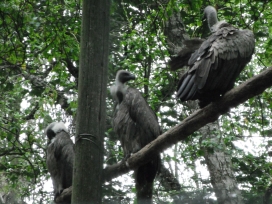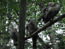 07. Dünnschnabelgeier (oder Schmalschnabelgeier oder Schlankschnabelgeier) Die Dünnschnabelgeier leben in den feuchten und bewaldeten Gebieten in bis zu 1.000m Höhe. Der Gesamtbestand der Dünnschnabelgeier, lat. Gyps teniurostris, reduzierte sich in 10 bis 15 Jahren um 96,8% („Greifvögel und Falknerei“ (2016)). Als Bestand in Nepal gibt man „keine 1.000 Brutpaare mehr“ an („Greifvögel und Falknerei“ (2016)). Als Verbreitungsgebiet findet man die Gangesebene bis zum Himalaja und von Kaschmir bis nach „Nepal, Begalen, Assam“ (Weick: Die Greifvögel der Welt“, (1980)) oder das Himalaja-Vorgebirge und die Gangesebene bis Assam (Ferguson-Lees/Christie (“Die Greifvögel der Welt” (2009)) oder Himalaya bis Nordwestindien, durch Nepal, Nordostindien, ins Gangesdelta (Grimmett, Inskipp, Inskipp: „Birds of the Indien Subcontinent“ (2015)) oder Himalaja, bis Südostasien (Barthel, Barthel, Bezzel, Eckhoff, van der Elzen, Hinkelmann, Steinheimer: „Die Vögel der Erde – Arten, Unterarten, Verbreitung und deutsche Namen“, 2021). In Kambodscha dokumentierte man einerseits 2004 34 Dünnschnabelgeier, 2006 31 Dünnschnabelgeier, 2007 26 Dünnschnabelgeier, 2008 51 Dünnschnabelgeier, 2009 84 Dünnschnabelgeier, 2010 45 Dünnschnabelgeier, 2011 45 Dünnschnabelgeier, 2012 46 Dünnschnabelgeier, 2013 64 Dünnschnabelgeier, 2014 52 Dünnschnabelgeier, 2015 47 Dünnschnabelgeier, 2016 37 Dünnschnabelgeier, 2017 35 Dünnschnabelgeier, 2018 35 Dünnschnabelgeier, 2019 43 Dünnschnabelgeier, 2020 43 Dünnschnabelgeier, 2021 31 Dünnschnabelgeier, 2022 42 Dünnschnabelgeier und andererseits gibt man für 2021/2022 und andererseits gibt man für 2021/2022 9 gefundene Horste und 8 Jungvogel (CVWG. „Annual Report“: 2022). Aufgrund einer Bestanderfassung eines Kambodschanischen Ministeriums dokumentierte man 42 Dünnschnabelgeier im Jahr 2023 in Kambodscha (VulPro: „The Vulpro Flyer“ (July to September 2023)). Zum Dünnschnabelgeier werden in Nepal zur Brutseason 2018-2019 7 Bruten und davon 5 erfolgreiche Bruten („Report of 9th Annual Meeting of Saving Asia’s Vultures from Extinction“) angegeben. Aufgrund einer Zählung in 32 Distrikten Nepals am 7. September 2019 (Internationaler Geierjahrestag oder Welt-Geier-Tag (International Vulture Awareness Day)) dokumentierte man 38 Dünnschnabelgeier („Report of 9th Annual Meeting of Saving Asia’s Vultures from Extinction“). In Nepal wurden im Zeitraum 2020 bis 2021 in 12 Distriken 500 Geiernester überwacht, wobei 345 erfolgreiche Bruten mit einem Kücken und 156 nicht erfolgreiche Bruten dokumentiert wurden und man konnte bei den 5 Dünnschnabelgeiernestern keine erfolgreiche Brut dokumentiern („11th Annual SAVE Report“, save asia's vulture from extinction, S.42). Im Jatayu Conservation Breeding Center (gegründet 2004) in Indien, dass derzeit 43 Dünnschnabelgeier beherbergt, gibt an, dass im Zeitraum 2018-2019 3 Dünnschnabelgeier schlüpften („Report of 9th Annual Meeting of Saving Asia’s Vultures from Extinction“). Im Vulture Conservation Breeding Centre (VCBC) in Westbengalen (gegründet 2005) in Indien leben derzeit 18 Dünnschnabelgeier („Report of 9th Annual Meeting of Saving Asia’s Vultures from Extinction“). Das Vulture Conservation Breeding Centre (VCBC) in Assam (gegründet 2007) in Indien gibt an, dass es derzeit Dünnschnabelgeier züchtet („Report of 9th Annual Meeting of Saving Asia’s Vultures from Extinction“). Der Kopf und der Hals sind „schwarz glänzend“ und die Halskrause ist weisslich (Ferguson-Lees/Christie: “Die Greifvögel der Welt” (2009)). Das Gefieder ist dunkelbeige bis braunbeige. Die Grösse beträgt 93 bis 100cm (Ferguson-Lees/Christie: “Die Greifvögel der Welt” (2009); Grimmett, Inskipp, Inskipp: „Birds of the Indien Subcontinent“ (2015)). Die Dünnlschnabelgeier brüten auf Bäumen (Ferguson-Lees/Christie: “Die Greifvögel der Welt” (2009)) in Kolonien mit “nicht mehr als 4 bis 6” Paaren zusammen (Fischer: „Die Geier“, NBB 311 (2005)). Beide Altvögel brüten das Ei in ca. 50 Tagen aus (Fischer: „Die Geier“, NBB 311 (2005)). |