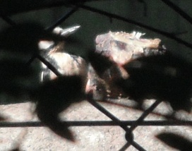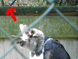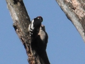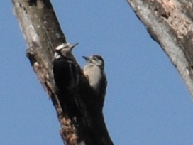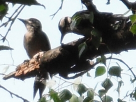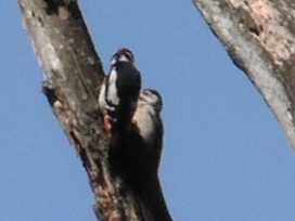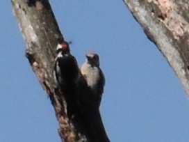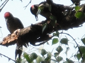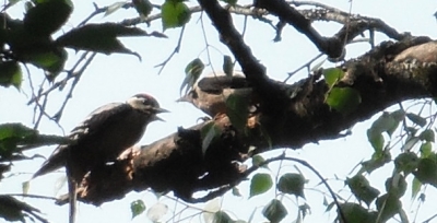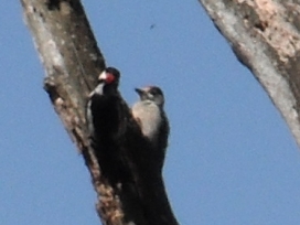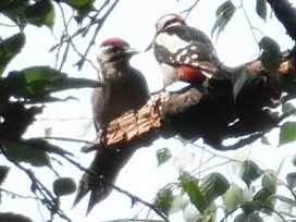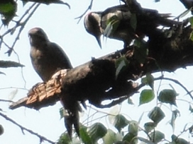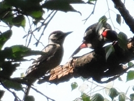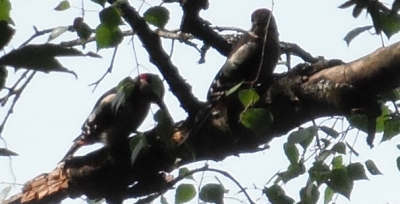 Altvogel (links) mit Jungvogel (rechts; roter Oberkopf mit schwarzer Umrandung) |