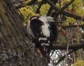 Die Fotos unterhalb dieser Zeilen des Buntspechts (Buntspecht?; keine durchgehende Linie zum Hinterkopf!; junges Weibchen?, Hybrid?) wurden in Nürnberg (Westfriedhof) 2018 aufgenommen.