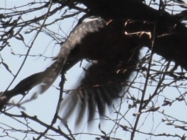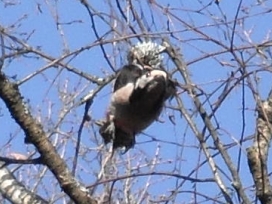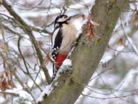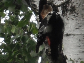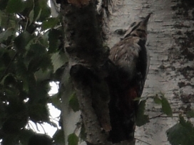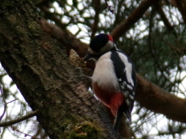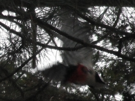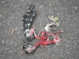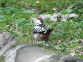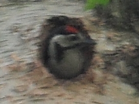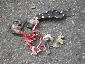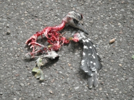 Die „grausamen Natur“ im Sinne von “Fressen oder Gefressen werden”, das Ende eines jungen Buntspechts (roter Oberkopf mit schwarzer Umrandung).