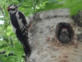 Die Fotos unterhalb dieser Zeilen der Buntspechte (Altvögel, Jungvögel) wurden in Nürnberg (Südfriedhof) 2023 aufgenommen.