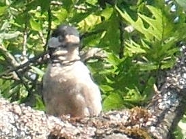 Jungvogel (roter Oberkopf mit schwarzer Umrandung)