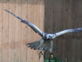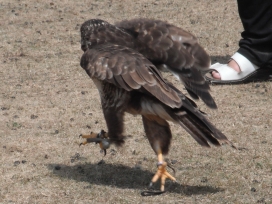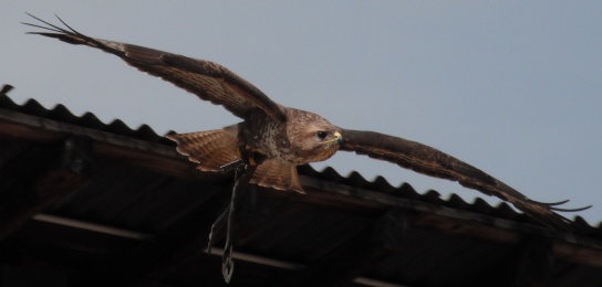 Die Mäusebussarde suchen im Such- und Rüttelflug nach der Beute (Greifvogelstation Hellenthal: Zooschilder) oder stürzen aus einer Höhe von 30 bis 80m Höhe „meist im flachen Winkel auf den Boden“ der Beute entgegen (Bezzel: „Greifvögel“ (1994)).