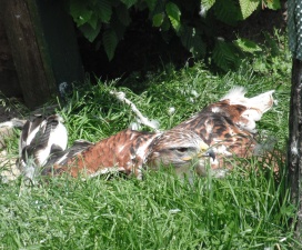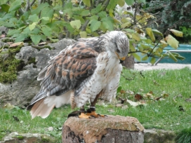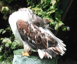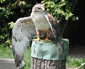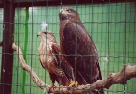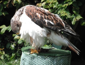 Die Fotos unterhalb dieser Zeilen wurden in der in der Falknerei Adlerhorst (links, mitte: helle Morphe; rechts: dunkle Morphe) aufgenommen.