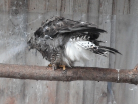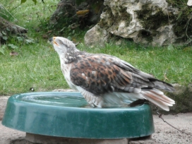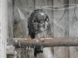 Die nachfolgenden Fotos (Pflegefall in einer geschlossenen Voliere mit „Sichtlöchern“) wurden in der LBV Vogelauffang- und Pflegestation Regenstauf gemacht.