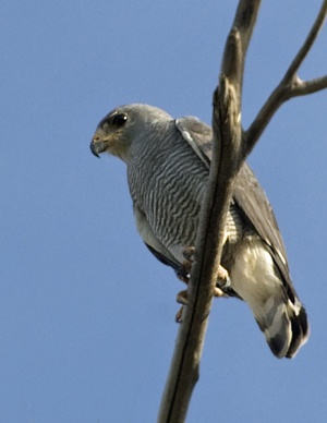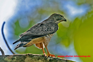 15. Silberbussard (oder Graubussard oder Zweibindenbussard oder Mexikanischer Zweibindenbussard) Die Silberbussarde leben in den tropischen und subtropischen Wäldern, feuchten Wäldern, trockenen Wäldern, im offenen mit Bäumen und Büschen versehenen Gelände, in Savannen mit Bäumen, in Gewässernähe, in bis zu 1300m Höhe. Als Verbreitungsgebiet wird allgemein „Mexiko bis Nordargentinien“ (Lloyd/Lloyd: „Greifvögel und Eulen“ (1980)) oder Arizona bis Südamerika (Everett: „Raubvögel der Welt“ (1978)) angegeben. Genaugenommen ist das Verbreitungsgebiet der Unterart Buteo nitidus nitidus (Latham, 1790) Trinidad, Venezuela, Ostecuador, Guayanas, Amazonien (Weick, Brown: „Die Greifvögel der Welt“ (1980)) oder „Amazonien, Trinidad“ (Ferguson-Lees/Christie: „Die Greifvögel der Welt“ (2009)) oder Trinidad, Nordamazonien (Barthel, Barthel, Bezzel, Eckhoff, van der Elzen, Hinkelmann, Steinheimer: „Die Vögel der Erde – Arten, Unterarten, Verbreitung und deutsche Namen“, 2021)). Genaugenommen ist das Verbreitungsgebiet der Unterart Buteo nitidus pallidus (Todd, 1915) Südbrasilien, Ostbolivien, Paraguay bis Mittelargentinien (Weick, Brown: „Die Greifvögel der Welt“ (1980)) oder Ostbolivien, Südbrasilien bis Nordargentinien (Ferguson-Lees/Christie: „Die Greifvögel der Welt“ (2009)) oder Südbrasilien, Ostbolivien, Paraquay, Nordargentinien (Barthel, Barthel, Bezzel, Eckhoff, van der Elzen, Hinkelmann, Steinheimer: „Die Vögel der Erde – Arten, Unterarten, Verbreitung und deutsche Namen“, 2021)). Genaugenommen ist das Verbreitungsgebiet der Unterart Buteo nitidus blakei (Hellmayr & Conover, 1949) Südwest-Costa Rica, bis Westecuador (Barthel, Barthel, Bezzel, Eckhoff, van der Elzen, Hinkelmann, Steinheimer: „Die Vögel der Erde – Arten, Unterarten, Verbreitung und deutsche Namen“, 2021)). Genaugenommen ist das Verbreitungsgebiet der Unterart Buteo nitidus costariciensis oder Buteo nitidus costaricensis (Swann, 1922) Südwest-Costa-Rica bis Nordkolumbien und Westecuador (Weick, Brown: „Die Greifvögel der Welt“ (1980)) oder Südwest-Costa-Rica bis Panama bis Westecuador (Ferguson-Lees/Christie: „Die Greifvögel der Welt“ (2009)). Die Unterart Buteo nitidus costariciensis oder Buteo nitidus costaricensis ist bei Barthel, Barthel, Bezzel, Eckhoff, van der Elzen, Hinkelmann, Steinheimer („Die Vögel der Erde – Arten, Unterarten, Verbreitung und deutsche Namen“, 2021) nicht aufgeführt. Genaugenommen ist das Verbreitungsgebiet der Unterart Buteo nitidus plagiatus (Schlegel, 1862) Süd-USA bis Nordwest-Costa Rica (Weick, Brown: „Die Greifvögel der Welt“ (1980); Ferguson-Lees/Christie: „Die Greifvögel der Welt“ (2009)) oder Südwest-USA, bis Nordwest-Costa Rica (Barthel, Barthel, Bezzel, Eckhoff, van der Elzen, Hinkelmann, Steinheimer: „Die Vögel der Erde – Arten, Unterarten, Verbreitung und deutsche Namen“, 2021)). Andererseits wurde die Unterart Buteo nitidus plagiatus zur eigenständigen Art Graubussard, lat. Buteo plagiatus erhoben (Vogelwarte Band 58: Heft 1: Februar 2020; Barthel, Barthel, Bezzel, Eckhoff, van der Elzen, Hinkelmann, Steinheimer: „Die Vögel der Erde – Arten, Unterarten, Verbreitung und deutsche Namen“, 2021)). Allgemein findet man, dass das Gefieder grösstenteils grau ist (Erize, Mata, Rumboll: „Birds of South America“, 2006) bzw. auf der Oberseite grau ist (Dunn/Alderfer: „Field Guide to the Birds of North America“ (2011); Wheeler/Clark: „A Photographic Guide to North American Raptors“ (1995)). Auf dem schwarzen Schwanz befinden sich zwei weisse Querstreifen (Wheeler/Clark: „A Photographic Guide to North American Raptors“ (1995)). Allgemein findet man, dass die Unterseite „grau mit weisser Bänderung“ ist (Lloyd/Lloyd: „Greifvögel und Eulen“ (1980)) bzw. grau-weiss gestreift ist (Erize, Mata, Rumboll: „Birds of South America“ (2006); Wheeler/Clark: „A Photographic Guide to North American Raptors“ (1995) bzw. grau gestreift ist (Dunn/Alderfer: „Field Guide to the Birds of North America“ (2011)). Zur Unterart Buteo nitidus plagiatus findet man, dass die Oberseite „grau, unauffällig gebändert, mit schwarzen Schaftstricheln“ versehen ist, der schwarze Schwanz zwei gut sichtbare weisse Querbinden hat und die Unterseite „eng grau-weiss gebändert“ ist (Ferguson-Lees/Christie: „Die Greifvögel der Welt“ (2009)). Die Grösse beträgt 38 bis 43cm (Lloyd/Lloyd: „Greifvögel und Eulen“ (1980); Weick/Brown: „Die Greifvögel der Welt“ (1980)) oder 43cm (Dunn/Alderfer: „Field Guide to the Birds of North America“ (2011)) oder 36 bis 46cm (Wheeler/Clark: „A Photographic Guide to North American Raptors“ (1995); Ferguson-Lees/Christie: „Die Greifvögel der Welt“ (2009)) oder 39cm beim Männchen und 45cm beim Weibchen (Erize, Mata, Rumboll: „Birds of South America“, 2006) Zur Nahrung zählen kleine Vögel, kleine Säugetiere, Insekten und Reptilien (Eidechsen). Das Nest befindet sich auf einem Baum in 10 bis 12 m Höhe. |
