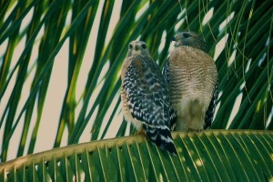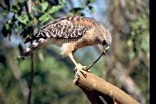 17. Breitflügelbussard (oder Breitschwingenbussard) „Seit etwa 30 Millionen Jahren“ (Frank: „Audubon's Birds of America, Die Vogelwelt Amerikas“ (1986)) existieren die Breitflügelbussarde, die in den Laubwäldern, Mischäldern, in bis zu 4.000m Höhe leben. Als Verbreitungsgebiet werden allgemein die USA und einige Karibische Inseln (Lloyd/Lloyd: „Greifvögel und Eulen“ (1980)) angegeben. Genaugenommen ist die Unterart Buteo platypterus platypterus (Vieillot, 1823) in Ost-Nordamerika (Weick, Brown: „Die Greifvögel der Welt“ (1980)) oder in Zentral- und Süd-Kanada bis in den Süden der USA („Washingtoner Artenschutzabkommen, Erkennungsbuch“ (Band 2 (1993))) oder in Südkanada und im Osten der USA (Ferguson-Lees/Christie: „Die Greifvögel der Welt“ (2009)) oder in Zentral-, Südostkanada, Ost-USA (Barthel, Barthel, Bezzel, Eckhoff, van der Elzen, Hinkelmann, Steinheimer: „Die Vögel der Erde – Arten, Unterarten, Verbreitung und deutsche Namen“, 2021)) verbreitet. Die Breitflügelbussarde der Unterart Buteo platypterus platypterus fliegen oft in grossen Gruppen ins Überwinterungsgebiet nach „Mittelamerika südwärts bis Brasilien“ (Gosler: „Die Vögel der Welt“) oder „bis nach Brasilien“ („Washingtoner Artenschutzabkommen, Erkennungsbuch“ (Band 2 (1993))) oder nach Mittelamerika bis Venezuela und Peru (Weick, Brown: „Die Greifvögel der Welt“ (1980)) oder nach Mexiko bis West-Südamerika (Ferguson-Lees/Christie: „Die Greifvögel der Welt“ (2009)). Genaugenommen ist die Unterart Buteo platypterus cubanensis (Burns, 1911) ist auf Kuba (Weick, Brown: „Die Greifvögel der Welt“ (1980); „Washingtoner Artenschutzabkommen, Erkennungsbuch“ (Band 2 (1993)); Ferguson-Lees/Christie: „Die Greifvögel der Welt“ (2009); Barthel, Barthel, Bezzel, Eckhoff, van der Elzen, Hinkelmann, Steinheimer: „Die Vögel der Erde – Arten, Unterarten, Verbreitung und deutsche Namen“, 2021)) verbreitet. Genaugenommen ist die Unterart Buteo platypterus insulicola (Riley, 1908) ist auf Antiqua (Weick, Brown: „Die Greifvögel der Welt“ (1980); „Washingtoner Artenschutzabkommen, Erkennungsbuch“ (Band 2 (1993)); Ferguson-Lees/Christie: „Die Greifvögel der Welt“ (2009); Barthel, Barthel, Bezzel, Eckhoff, van der Elzen, Hinkelmann, Steinheimer: „Die Vögel der Erde – Arten, Unterarten, Verbreitung und deutsche Namen“, 2021)) verbreitet. Genaugenommen ist die Unterart Buteo platypterus brunnescens (Danford & Smyth, 1935) in Puerto Rico (Weick, Brown: „Die Greifvögel der Welt“ (1980); Ferguson-Lees/Christie: „Die Greifvögel der Welt“ (2009); Barthel, Barthel, Bezzel, Eckhoff, van der Elzen, Hinkelmann, Steinheimer: „Die Vögel der Erde – Arten, Unterarten, Verbreitung und deutsche Namen“, 2021)) verbreitet. Genaugenommen ist die Unterart Buteo platypterus rivierei (Verril, 1905) auf Dominica, Martinique, St. Lucia (Weick, Brown: „Die Greifvögel der Welt“ (1980); „Washingtoner Artenschutzabkommen, Erkennungsbuch“ (Band 2 (1993)); Ferguson-Lees/Christie: „Die Greifvögel der Welt“ (2009); Barthel, Barthel, Bezzel, Eckhoff, van der Elzen, Hinkelmann, Steinheimer: „Die Vögel der Erde – Arten, Unterarten, Verbreitung und deutsche Namen“, 2021)) verbreitet. Genaugenommen ist die Unterart Buteo platypterus antillarum (Clark, 1905) auf „St. Vincent, Grenadinen, Grenada, Barbados, Tobago und Little Tobago” (Weick, Brown: „Die Greifvögel der Welt“ (1980); Ferguson-Lees/Christie: „Die Greifvögel der Welt“ (2009)) oder St. Vincent, Grenada, Tobago („Washingtoner Artenschutzabkommen, Erkennungsbuch“ (Band 2 (1993)); Barthel, Barthel, Bezzel, Eckhoff, van der Elzen, Hinkelmann, Steinheimer: „Die Vögel der Erde – Arten, Unterarten, Verbreitung und deutsche Namen“, 2021)) verbreitet. Allgemein zum Gefieder findet man, dass der Kopf und die Oberseite braun ist (Wheeler/Clark: „A Photographic Guide to North American Raptors“ (1995)) bzw. die Oberseite „dunkelbraun“ ist (Gosler: „Die Vögel der Welt“) bzw. die Oberseite braun ist und die Federn hellumsäumt sind (Erize, Mata, Rumboll: „Birds of South America“, 2006). Der Schwanz ist schwarz-weiss gestreift und hat eine schmale weisse Endbinde (Gosler: „Die Vögel der Welt“). Die Unterseite ist „weisslich mit rötlichbrauner Bänderung“ (Gosler: „Die Vögel der Welt“) bzw. ist weiss und rötlichbraun gebändert (Wheeler/Clark: „A Photographic Guide to North American Raptors“ (1995)) bzw. rotbraun-braun gebändert (Dunn/Alderfer: „Field Guide to the Birds of North America“ (2011)). Zur Unterart Buteo platypterus platypterus findet man, der dunkelgraubraune Kopf hell gesäumte Federn hat, die weisse Kehle einen zentralen Streifen hat („Washingtoner Artenschutzabkommen, Erkennungsbuch“ (Band 2 (1993))), dass die dunkelgraubraune Oberseite hell gesäumte Federn hat (Ferguson-Lees/Christie: „Die Greifvögel der Welt“ (2009); „Washingtoner Artenschutzabkommen, Erkennungsbuch“ (Band 2 (1993))). Der Schwanz ist schwarz und mit einer breiten weissen Binde versehen (Ferguson-Lees/Christie: „Die Greifvögel der Welt“ (2009)) bzw. die Oberschwanzdecken sind dunkelgraubraun und vor der weissen Schwanzspitze befindet sich eine breite weisse Binde („Washingtoner Artenschutzabkommen, Erkennungsbuch“ (Band 2 (1993))). Die Unterseite ist „weiss, stark rötlich gefleckt/gebändert“ und der Bauch und die Hosen sind „heller“ (Ferguson-Lees/Christie: „Die Greifvögel der Welt“ (2009)) bzw. die Unterseite ist „trüb weiss, stark gestreift und dunkelbraun bis“ hellrötlichbraun „gesprenkelt“ („Washingtoner Artenschutzabkommen, Erkennungsbuch“ (Band 2 (1993))). Eine dunkle bzw. dunkelbraune Morphe ist auch vorhanden (Wheeler/Clark: „A Photographic Guide to North American Raptors“ (1995); Ferguson-Lees/Christie: „Die Greifvögel der Welt“ (2009); „Washingtoner Artenschutzabkommen, Er