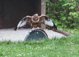 16. Präriebussard Die Präriebussarde leben in den Tundren, lichten Wäldern, offene Landschaften, offenen Ebenen, Halbwüsten, Wüsten, Feldern, Prärien, Steppen, Ebenen, in bis zu 1.500m Höhe zum Teil in kleinen Gruppen. Ein Bestand von 40.000 bis 55.000 Paaren („Washingtoner Artenschutzabkommen, Erkennungsbuch“ (Band 2 (1993))) wird angegeben. Als Verbreitungsgebiet wird „West- und Nordamerika“ (Lloyd/Lloyd: „Greifvögel und Eulen“ (1980)) oder Nordamerika (Everett: „Raubvögel der Welt“ (1978)) oder Kanada, der Westen der USA und Mexiko („Vögel, Die grosse Bild-Enzyklopädie“ (2007)) oder das westliche Nordamerika, von Alaska bis Nordmexiko (Weick, Brown: „Die Greifvögel der Welt“ (1980)) oder „West- und Zentral-Nordamerika, von Alaska“ bis Minnesota, bis Nordmexiko („Washingtoner Artenschutzabkommen, Erkennungsbuch“ (Band 2 (1993))) oder Westkanada, der Westen der USA und Nordmexiko (Ferguson-Lees/Christie: „Die Greifvögel der Welt“ (2009)) oder Kanada („Die Natur: Visuelle Enzyklopädie …..“, 2010) oder Südwestkanada, West-USA, Nordmexiko (Barthel, Barthel, Bezzel, Eckhoff, van der Elzen, Hinkelmann, Steinheimer: „Die Vögel der Erde – Arten, Unterarten, Verbreitung und deutsche Namen“, 2021)) angegeben. Präriebussarde wurden als Ausnahmegäste in Westeuropa und Israel beobachtet (Beaman/Madge: „Handbuch der Vogelbestimmung, Europa und Westpaläarktis“ (1998/2007)). Die Präriebussarde haben als Hauptüberwinterungsgebiet Nordargentinien (Elphick: „Atlas des Vogelzugs, Die Wanderungen der Vögel auf unserer Erde“ (2008)), aber auch in den südlichen USA, Südflorida und Zentralamerika (Elphick: „Atlas des Vogelzugs, Die Wanderungen der Vögel auf unserer Erde“ (2008)) oder ansonsten findet man auch als Überwinterungsgebiet Südamerika (Dierschke: „1000 Vögel“) oder „die Pampas Argentiniens“ (Robiller: „Lexikon der Vogelhaltung“ (1986)) oder Argentinien (Everett: „Raubvögel der Welt“ (1978); „Die Natur: Visuelle Enzyklopädie …..“, 2010) oder „bis Argentinien“ (Weick, Brown: „Die Greifvögel der Welt“ (1980)) oder „Nordargentinien, Südbrasilien und Paraguay“ („Vögel, Die grosse Bild-Enzyklopädie“ (2007)) oder „Nord-Argentinien, Süd-Brasilien und Paraguay“ („Washingtoner Artenschutzabkommen, Erkennungsbuch“ (Band 2 (1993))) oder Südamerika, zumeist Nord- und Ostargentinien (Ferguson-Lees/Christie: „Die Greifvögel der Welt“ (2009)). Auch in Kalifornien wurden bereits Wintergäste beobachtet. Das Gefieder ist „ziemlich variabel“ bzw. es gibt „helle und dunkle“ Morphen und „intermediäre Formen“ (Beaman/Madge: „Handbuch der Vogelbestimmung, Europa und Westpaläarktis“ (1998/2007)) bzw. es gibt einen hellen, einen dunklen und „einen dazwischenliegenden Typ“ („Vögel, Die grosse Bild-Enzyklopädie“ (2007)) bzw. es werden helle, rotbraune und dunkle Morphen beschrieben (Wheeler/Clark: „A Photographic Guide to North American Raptors“ (1995)) bzw. es werden helle, rötliche und dunkle Morphen beschrieben (Ferguson-Lees/Christie: „Die Greifvögel der Welt“ (2009)). Im Allgemeinen findet man, dass der Kopf, der Hals und die Oberseite „dunkel- bis mittelbraun“ gefiedert sind und die Federn mit hellen Federsäumen umrandet sind und der braune Schwanz schwach gebändert ist (Robiller: „Lexikon der Vogelhaltung“ (1986)) bzw, dass der Kopf braun und die Kehle weiss ist (Wheeler/Clark: „A Photographic Guide to North American Raptors“ (1995)) bzw. dass die Kehle reinweiss, der Latz braun und auf der Unterseite sich sonst dunkle Abzeichen befinden („Vögel, Die grosse Bild-Enzyklopädie“ (2007)) bzw. dass die Kehle „weiss“ ist, die Brust „braun“ ist und die „Flanken, Bauch und Beine“ „rahmfarben“ sind (Gosler: „Die Vögel der Welt“) bzw. dass das Brustband braun ist (Dunn/Alderfer: „Field Guide to the Birds of North America“ (2011)) bzw. dass die Brust rotbraun bis dunkelbraun ist (Wheeler/Clark: „A Photographic Guide to North American Raptors“ (1995)) bzw. dass die Brust kastanienfarben und ansonsten die Unterseite weiss und mit kastanienfarbenen Muster versehen ist (Erize, Mata, Rumboll: „Birds of South America“, 2006) bzw. dass die Unterseite “weiss bis hellbraun“ gefiedert ist und die Flanken und Hosen sind „schwach braun gesperbert“ sind (Robiller: „Lexikon der Vogelhaltung“ (1986)) bzw. dass die Brust braun und ansonsten „gelblich braun und dunkel gesperbert oder völlig dunkel“ ist (Lloyd/Lloyd: „Greifvögel und Eulen“ (1980)). Die helle Morphe ist auf dem Ober- und Hinterkopf und auf der Oberseite braun (Erize, Mata, Rumboll: „Birds of South America“, 2006) bzw. ist auf dem Ober- und Hinterkopf und auf der Oberseite dunkelschwärzlichbraun und „undeutlich hellbraun gesäumt“ („Washingtoner Artenschutzabkommen, Erkennungsbuch“ (Band 2 (1993))) bzw. ist auf der Oberseite „braun“ (Gosler: „Die Vögel der Welt“) bzw. ist „braun, fein rötlich beige gesäumt“ (Ferguson-Lees/Christie: „Die Greifvögel der Welt“ (2009)). Die helle Morphe hat einen graunbraunen Schwanz „mit fünf bis sieben schmalen, dunklen Binden“ (Gosler: „Die Vögel der Welt“) bzw. hat einen graubraunen Schwanz, der „fein dunkel gebändert“ ist (Ferguson-Lees/Christie: „Die Greifvögel der Welt“ (2009)) hat einen grauen undeutlich schwarz gebänderten und mit weisser Spitze versehenen Schwanz („Washingtoner Artenschutzabkommen, Erkennungsbuch“ (Band 2 (1993))). Die helle Morphe hat einen hellen Rumpf (Beaman/Madge: „Handbuch der Vogelbestimmung, Europa und Westpaläarktis“ (1998/2007)) bzw. hat einen „kastanienbraunen Brustfleck“ („Vögel, Die grosse Bild-Enzyklopädie“ (2007)) bzw. hat auf der Unterseite ein „rötlich bis dunkelbraunes Brustband (kann unterbrochen sein)“ und einen weisslichen Bauch, der „manchmal gebändert“ ist (Ferguson-L