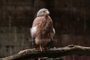 Das Gefieder ist rötlichbraun „mit etwas grau auf Kopf und Flügeln“ (Lloyd/Lloyd: „Greifvögel und Eulen“ (1980)) oder der Kopf ist dunkel (Weick, Brown: „Die Greifvögel der Welt“ (1980)) oder der Kopf und die Kehle sind „schwarz“ (Ferguson-Lees/Christie: „Die Greifvögel der Welt“ (2009)).