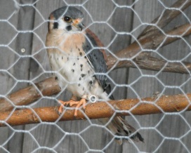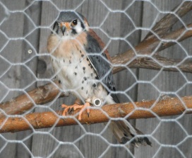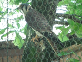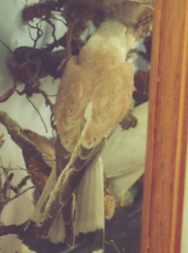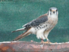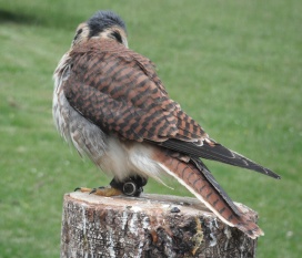 Falco sparverius sparverius: Beim Weibchen ist Kopf „heller, weniger blau, stärker gestreift“ als der Kopf des Männchens, die Oberseite ist „mehr oder weniger rötlich braun“, wobei dann die Oberseite, die Flügeldecken, der Schwanz „dunkelbraun gebändert“ sind und die Unterseite ist beige (Ferguson-Lees/Christie: “Die Greifvögel der Welt” (2009)).