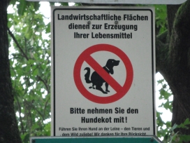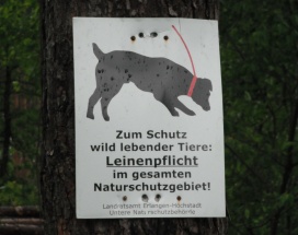 Hinweisschilder für den Menschen, lat. Homo sapiens (aufgenommen in Nürnberg (links, mitte (in Stein)), im Naturschutzgebiet: Tennenloher Forst (Erlangen); rechts oben), in Bad Herrenalb (rechts unten)