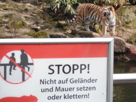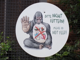 Die nachfolgenden Fotos zeigen Hinweisschilder für den Menschen, lat Homo sapiens (aufgenommen im Tiergarten Nürnberg)