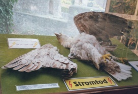 Die nachfolgenden Fotos zeigen einen Habicht, der durch eine Falle getötet wurde (aufgenommen im Naturmuseum Gotha; links) und einen Weisskopf-Seeadler, der durch eine Ölverschmutzung verstorben ist. (aufgenommen in der Deutschen Greifenwarte Bernolph Frhr. von Gemmingen, Burg Guttenberg (früher: Deutsche Greifenwarte Claus Fentzloff, Burg Guttenberg; mitte).