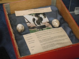 Durch den Menschen ausgerottet: Dronte oder Dodo, lat. Raphus cucullatus, um 1680 ausgestorben (Luther:„Die ausgestorbenen Vögel der Welt“, NBB424 (1986)), aufgenommen im Naumann-Museum Köthen (links) und im Museum für Naturkunde Berlin (mitte), Dünnschnabel-Nestorpapagei oder Dünnschnabel-Nestor, lat. Nestor meridionalis productus oder Plyctolophus productus, 1851 ausgestorben (Luther:„Die ausgestorbenen Vögel der Welt“, NBB424 (1986)), aufgenommen im Zoologischen Museum Göttingen (rechts).