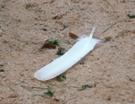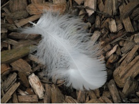 Die Feder einer Schleiereule wurde im Greifvogelpark Telfes aufgenommen.