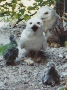 Unter den Eulen sind als natürlich weisse Vertreter in der freien Natur die Schnee-Eulen, lat. Bubo scandiacus (früher: lat. Nyctea scandiacus) zu erwähnen. Die Fotos unterhalb dieser Zeilen wurden im Zoo Augsburg aufgenommen.