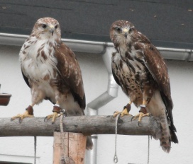 Die zwei 2 Farbmorphen des Königsbussards (aufgenommen in der Falknerei Adlerhorst)