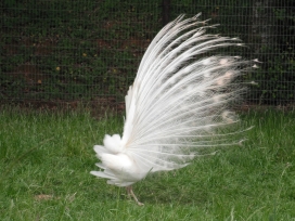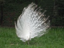 Der weisse Pfau, lat. Pavo ctristatus mut. alba ist „eine natürlich entstandene Unterart des blauen Pfaus“, „seine Färbung geht auf eine genetische Mutation zurück“ („Wunder der Tierwelt“ 01/2017).