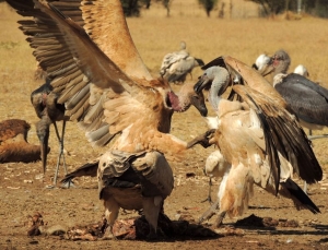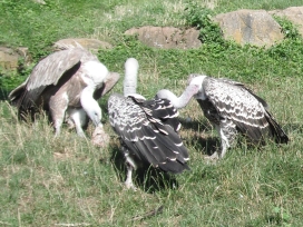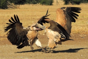 Mit freundlicher Genehmigung von Bettina Boemans, www.geierwelt.blogspot.de, wurden die nachfolgenden Fotos der streitenden Kapgeier bei "VulPro" (Vulture Conservation Programme (Südafrika)), www.vulpro.com, aufgenommen. |