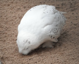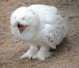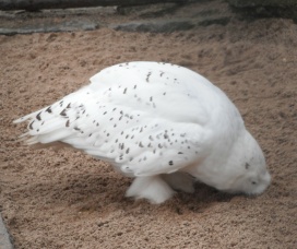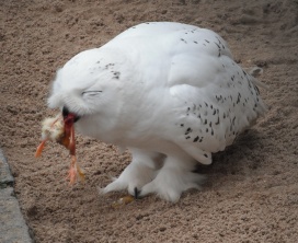 Die nachfolgenden Fotos zeigen einer fressende Schnee-Eule (aufgenommen im Zoo Halle). |