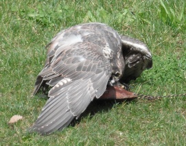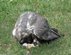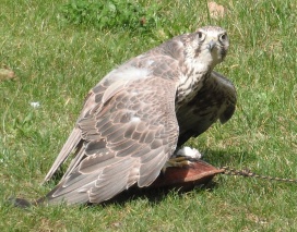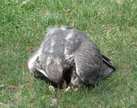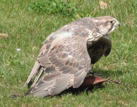 Ein Würgfalke beim Manteln im Tierpark München (Hellabrunn) . |