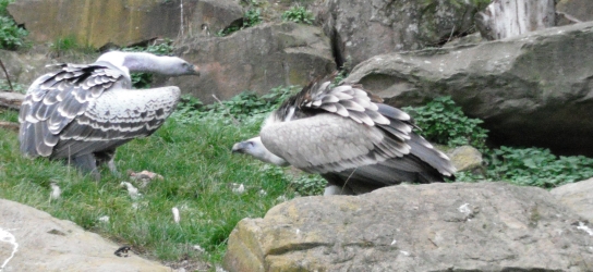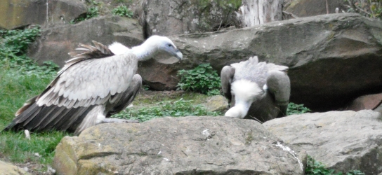 Das nachfolgende Bild zeigt zwei junge Schneegeier beim streiten (aufgenommen im Tiergarten Nürnberg) |