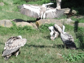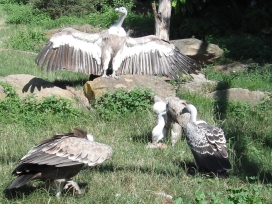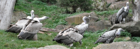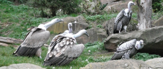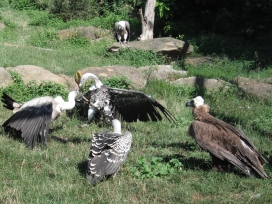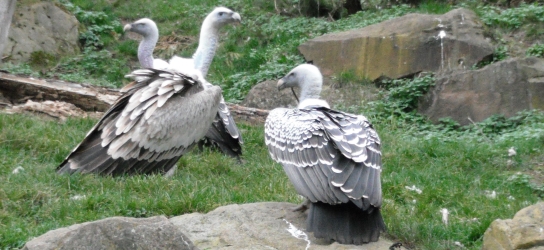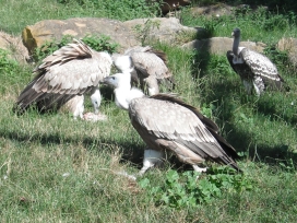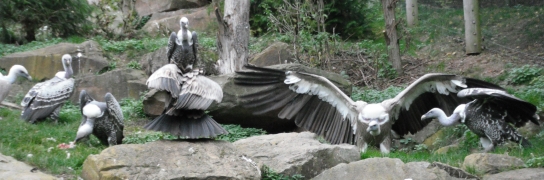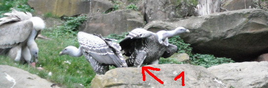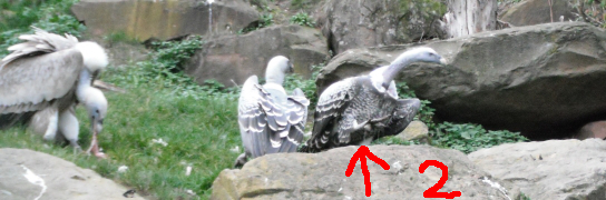 Die nachfolgenden Fotos (eine Beobachtungsstudie in Bildern) zeigen die Verhaltensweisen bei gefundenem Aas im Wildparadies Tripsdrill. Die Fotos dokumentieren die Verhaltensweisen der Geier der gleichen Geierart untereinander sowie auch die Verhaltensweisen der Geier unterschiedlicher Geierarten. Die abgebildeten Gänsegeier, Sperbergeier und der Möchsgeier sind im Imponiergehabe, in der „Herrscherpose“ in der Aasnähe auf einem Stein, als dominierende Geier und wartende Geier zu sehen. |