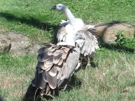 Die nachfolgenden Fotos zeigen einen jungen Falklandkarakara (aufgenommen im Tierpark Cottbus), der sich voll gefressen hat (zu erkennen am vollem Kropf). |