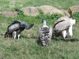 Mit freundlicher Genehmigung von Bettina Boemans, www.geierwelt.blogspot.de, wurden die nachfolgenden Fotos der Kapgeier mit Imponiergehabe bei "VulPro" (Vulture Conservation Programme (Südafrika)), www.vulpro.com, aufgenommen. |