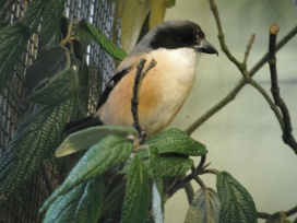 Die nachfolgenden Fotos (aufgenommen im Tiergarten Nürnberg) zeigen einen Bartkauz, der die Beute (links) im Schnabel hält und mit einen Fuss (mitte) hält. |
