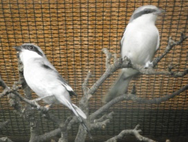 Die nachfolgenden Fotos zeigen eine adulte Sperbereule (rechts), die einen Jungvogel füttert (aufgenommen im Tiergarten Nürnberg). |