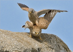 Buntfalken und Turmfalken (Falke 12/1998) führen während als auch ausserhalb der Brutzeit viele Kopulationen aufgrund fortpflanzungsbiologischer und und kommunikativer Bedeutung durch.
