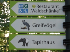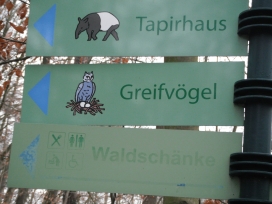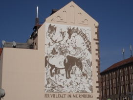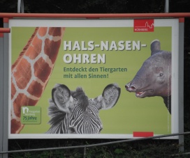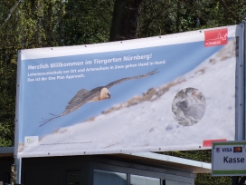 Die nachfolgenden Fotos zeigen vom Tiergarten Nürnberg ein Werbeplakat (links), ein Hausgemälde (mitte)