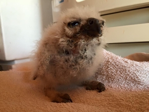 Mit freundlicher Genehmigung von Kerry Wolter von der "VulPro" (VulPro NPC - Vulture programme for the conservation of vulture species in southern Africa (Südafrika)), www.vulpro.com, konnte das linke Foto des Flecken-Uhus, lat. Bubo africanus (aus dem Nest gefallenes Kücken) verwendet werden.