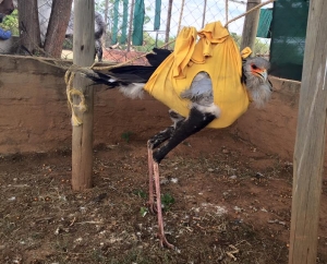 Mit freundlicher Genehmigung von Kerry Wolter von der "VulPro" (VulPro NPC - Vulture programme for the conservation of vulture species in southern Africa (Südafrika)), www.vulpro.com, konnten das linke Foto des verletzten und in Behandlung befindenden Sekretärs, lat. Sagittarius Serpentarius und das rechte Foto des wieder frei gelassenen Sekretärs, lat. Sagittarius Serpentarius verwendet werden.