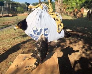 Mit freundlicher Genehmigung von Kerry Wolter von der "VulPro" (VulPro NPC - Vulture programme for the conservation of vulture species in southern Africa (Südafrika)), www.vulpro.com, konnte das linke Foto des verletzten und in Behandlung befindenden Kaffernadlers oder Verreaux-Adlers, lat. Aquila verreauxii verwendet werden.