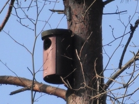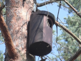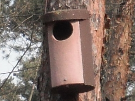 Nistkästenbeispiele für Eulen Waldkäuze (aufgenommen in Nürnberg im Sebalder Reichswald (Erlenstegen: Tiefgraben))