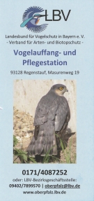 34431 Marsberg-Essentho: www.essenthoer-muehle.de 36166 Haunetal OT Kruspis: Verein für Umweltbildung und Greifvogelhilfe e.V.: www.greifvogel-hilfe.de 41379 Brüggen: www.greifvogelhilfe.de (www.greifvogelhilfe-mg.de) 51503 Rösrath: www.bergischegreifvogelhilfe.de 76131 Karlsruhe: www.falknerei-karlsruhe.de 90768 Fürth-Oberfürberg: https://greifvogel-auffangstation.de 91583 Diebach/Unterostheim: Greifvogel Auffangstation Mittelfranken e.V.: www.gam-ev.de 93128 Regenstauf: LBV Vogelauffang- und Pflegestation Regenstauf: www.oberpfalz.lbv.de 97080 Würzburg: Greifvogel- und Eulenhilfe Würzburg e.V www.greifvogel-hilfe.de