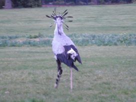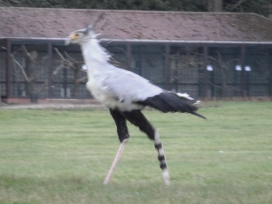 Die nachfolgenden Fotos eines Sekretärs mit Beinprothese wurden im Weltvogelpark (früher: Vogelpark Walsrode) aufgenommen.