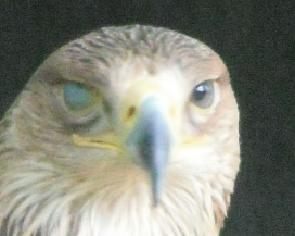 Die Augen sind „graugelb“ (Stinglwagner, Haseder: „Knaurs Grosses Jagdlexikon“ (1999, 2000)) oder hellbraun (Balzari, Griesohn-Pflieger, Gygax, Lücke, Graf; „Vogelarten Deutschlands, Österreichs und der Schweiz“ (2013)). Die Wachshaut ist „goldgelb“, der Schnabel „horngrau“ und die Schnabelspitze ist schwarz (Stinglwagner, Haseder: „Knaurs Grosses Jagdlexikon“ (1999, 2000)).