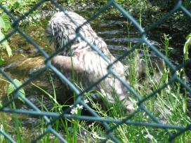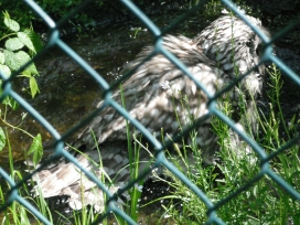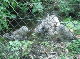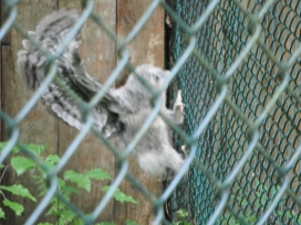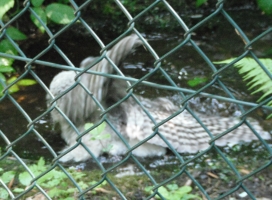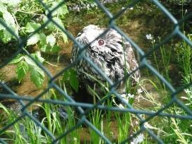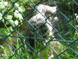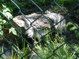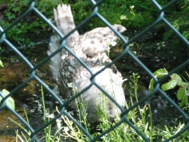 Nach dem Baden: Gefieder trocknen: schütteln der Flügel (rechter Altvogel) . |