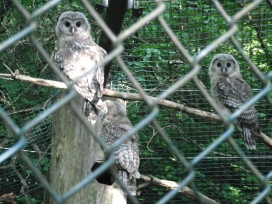 Jungvogel mit geschlossenen Augen (links, mitte) und mit offenen Augen (rechts) ... . |