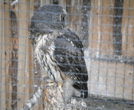 23. Bindenhalskauz (oder Schwarzweisskauz oder Weissbinden-Waldkauz) lat. Strix nigrolineata (früher: Strix huhula nigrolineata; Ciccaba nigrolineata)