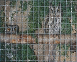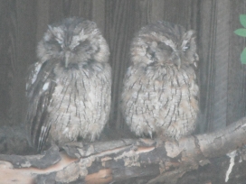 Das linke Foto (Otus asio) wurde im Hessischen Landesmuseum Darmstadt aufgenommen.