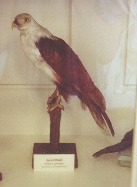 Die nachfolgenden Fotos wurden im Naturkundlichen Museum Mauritianum Altenburg (links), im Forschungsinstitut und Naturkundemuseum Senckenberg (Frankfurt; mitte oben), im Hessischen Landesmuseum Darmstadt (mitte unten) und im Naturkundemuseum Bamberg (bezeichnet mit Bussardweih, lat. Haliastur sphenurus; oder ist es vielleicht doch (auch) ein Brahmanenmilan, lat. Haliastur indus zu sehen?) aufgenommen.