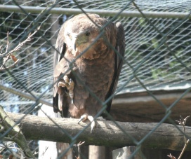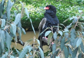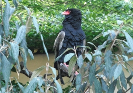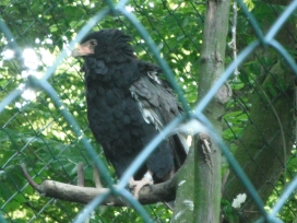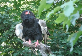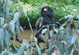 Bedroht werden die Gaukler durch vergiftetes Aas (Zoo Magdeburg: Zooschild).